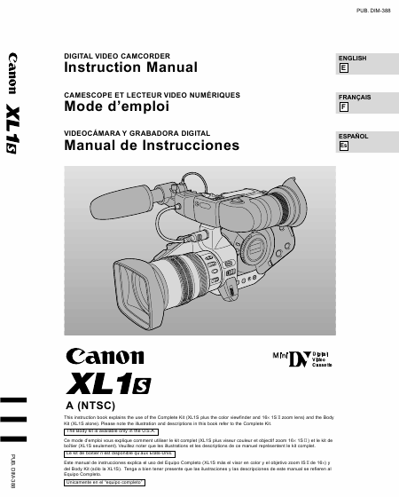 Telecharger CANON XL1s (NTSC) Mode emploi Français (124 Pages) 39.90 EUR