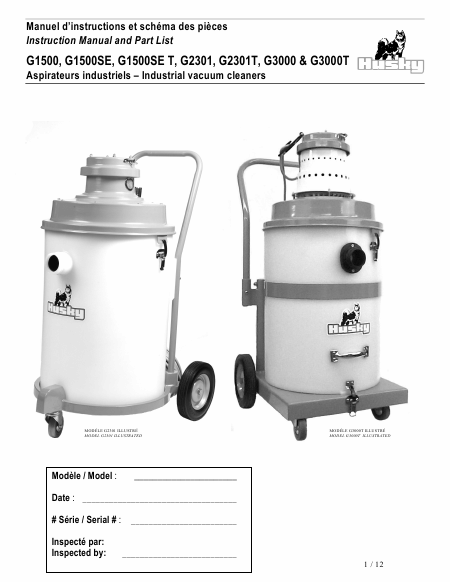 Telecharger HUSKY G2301T Liste pieces detachees Français (12 Pages) 12.90 EUR