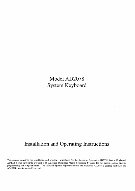 AMERICAN DYNAMICS AD2078 Mode emploi Anglais