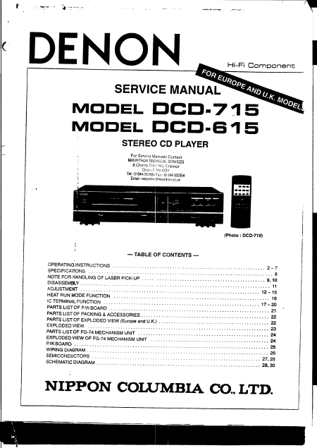 DENON DCD-615 (DCD615) Serviceanleitung Englisch