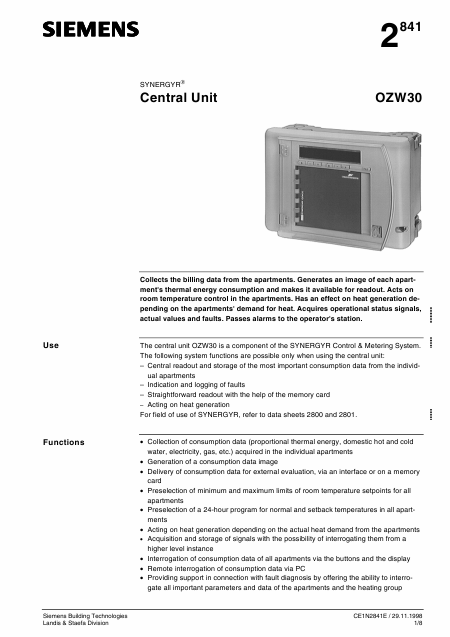 Scaricare SIEMENS OZW30 Synergyr Manuale di installazione Inglese (8 Pagine) 12.90 EUR