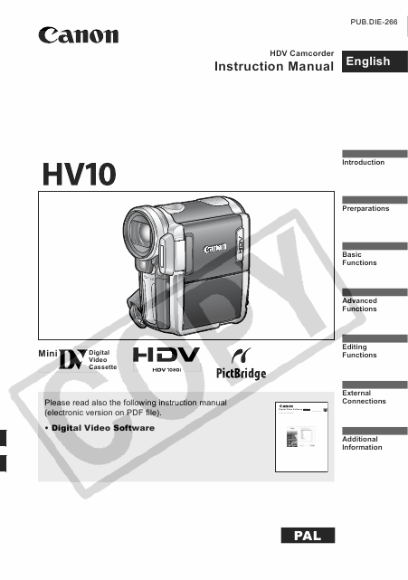 Download CANON HV10 (PAL) Anleitung Englisch (0 Seiten) 12.90 EUR