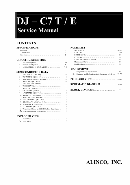 ALINCO DJ-C7E / DJ-C7T Manuale di servizio Inglese