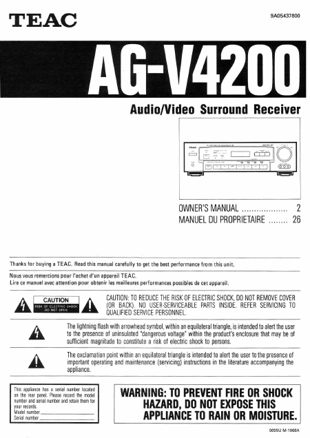 TEAC AG-V4200 (AGV4200) Istruzione Inglese