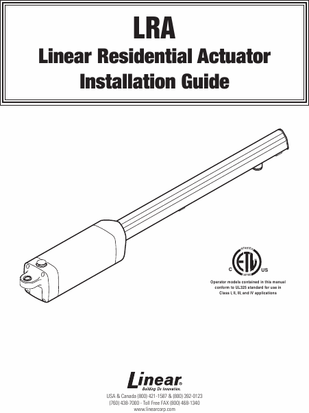 LINEAR LRA Manuale di installazione Inglese