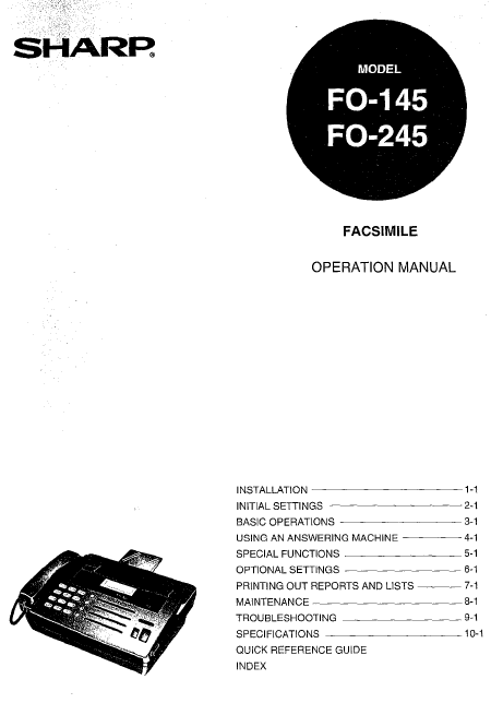 SHARP FO-145 Users Guide English