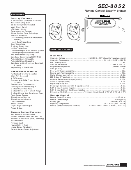 Descargar ALPINE SEC-8052 Manual de instalación Inglés (4 Páginas) 15.90 EUR