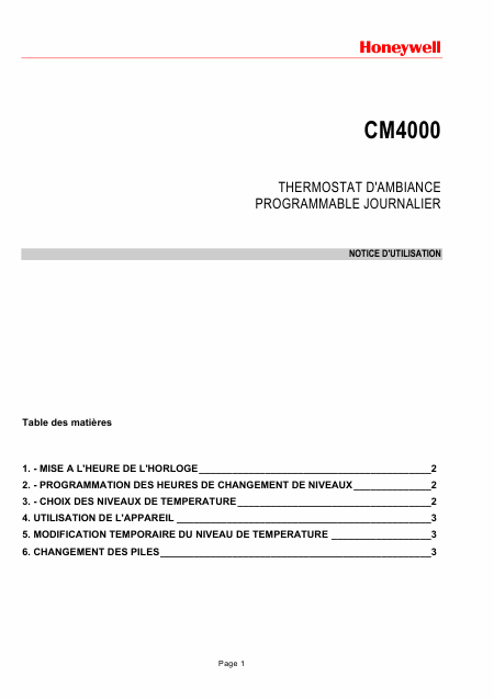 Download HONEYWELL T6640A (=CM4000) Users Guide French (4 Pages) 15.90 EUR