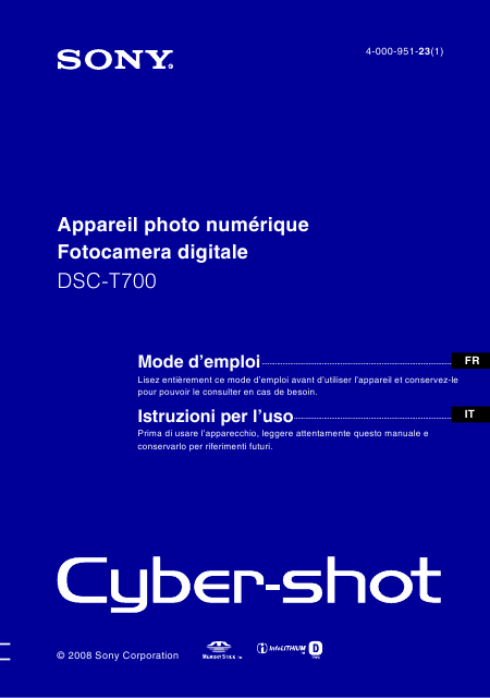 Descargar SONY DSC-T700 (DSCT700) CyberShot Guía del usuario Francés (303 Páginas) 15.90 EUR