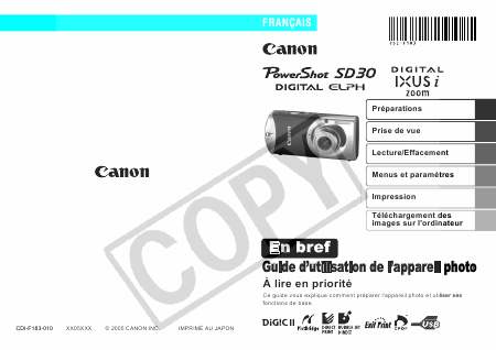 Descargar CANON Powershot SD30 / Digital IXUS i Zoom Guía del usuario Francés (0 Páginas) 15.90 EUR