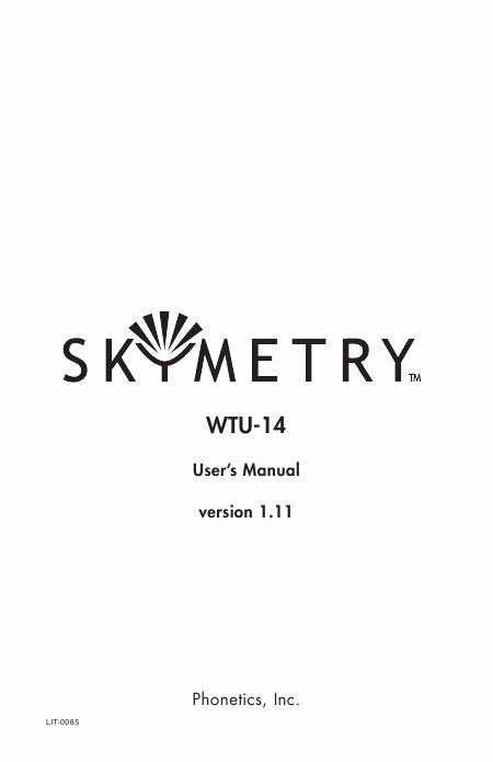 SKYMETRY WTU-14 Guía del usuario Inglés