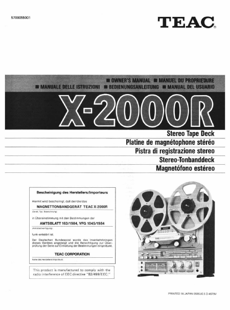 Descargar TEAC X-2000R Guía del usuario Español (61 Páginas) 39.90 EUR
