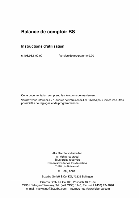 Scaricare BIZERBA BS 800 Istruzione Francese (244 Pagine) 39.90 EUR