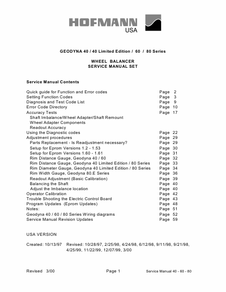 Baixar HOFMANN Geodyna 80 Series Manual de serviço Inglês (59 Pages) 39.90 EUR
