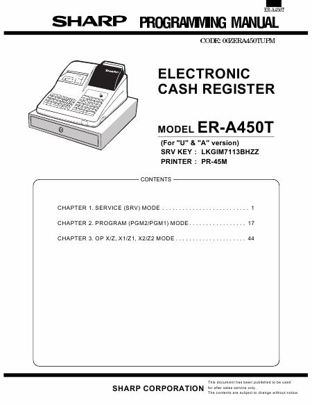 Baixar SHARP ER-A450 (Programming) Manual de Instalação Inglês (49 Pages) 39.90 EUR