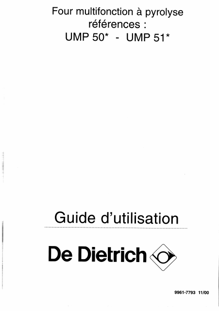 DE DIETRICH UMP504J1 Users Guide French