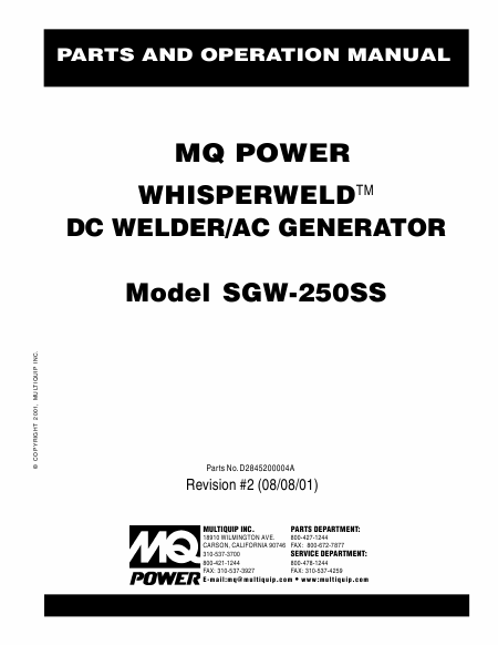 Descargar MULTIQUIP SGW-250SS Guía del usuario Inglés (92 Páginas) 39.90 EUR