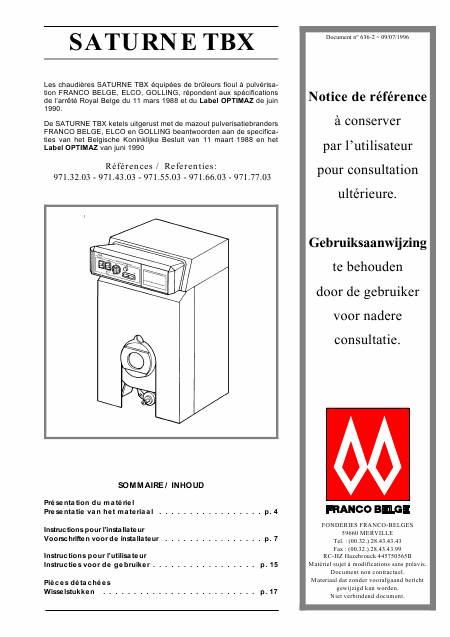 Download FRANCO-BELGE SATURNE TBX Installationsanweisungen Französisch (36 Seiten) 15.90 EUR