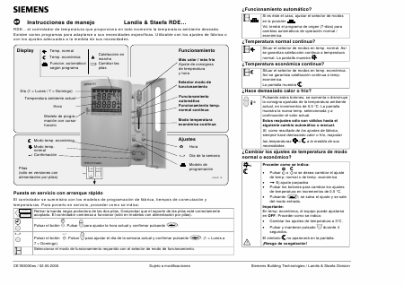 Baixar SIEMENS Landis & Staefa RDE.... Instruções Espanhol (2 Pages) 12.90 EUR