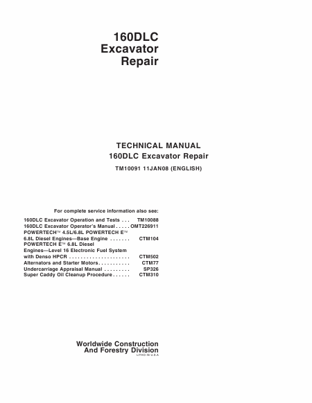 JOHN DEERE 160DLC (2008) Serviceanleitung Englisch