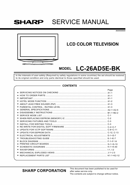 SHARP LC-26AD5E Manuel de service Anglais