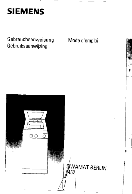 Download SIEMENS Siwamat Berlin 7452 (WP74520/02) Users Guide French (18 Pages) 15.90 EUR