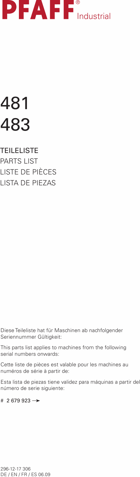 PFAFF 483 (Industrial) Ersatzteile Deutsch