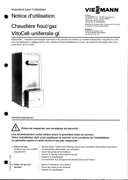 Download VIESSMANN Vitocell Uniferral GL Users Guide French (5 Pages) 15.90 EUR