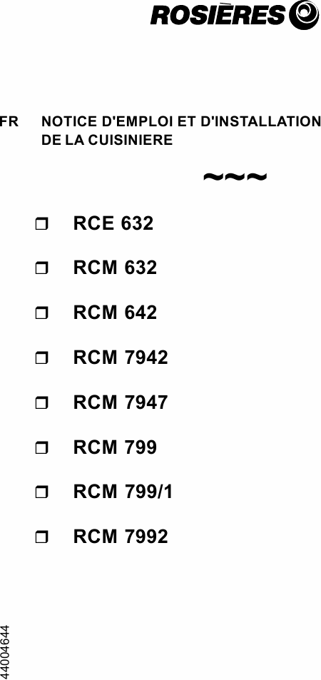 Scaricare ROSIERES RCM 7947 Istruzione Francese (40 Pagine) 12.90 EUR