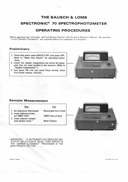 BAUSH + LOMB Spectronic 70 Mode emploi Anglais