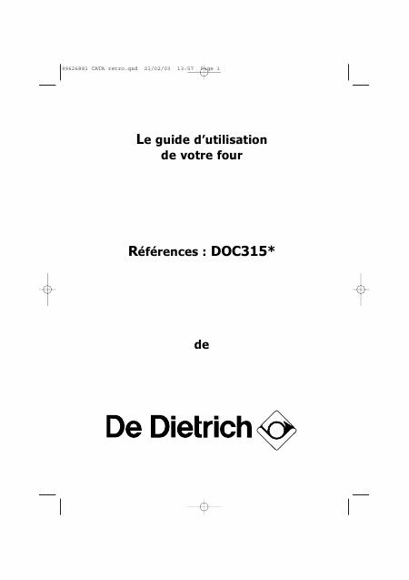 Download DE DIETRICH DOC315 Users Guide French (20 Pages) 12.90 EUR