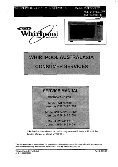 WHIRLPOOL 6MT243 Manuale di servizio Inglese