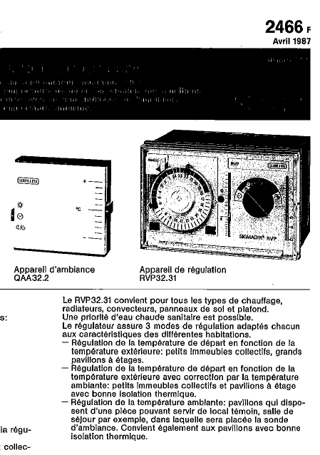 SIEMENS RVP 32.31 (RVP32.31) Manuel installation Français