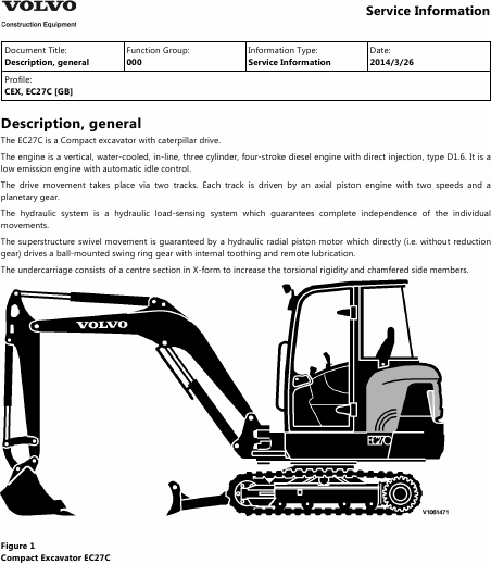Telecharger VOLVO EC27C Manuel de service Anglais (909 Pages) 39.90 EUR