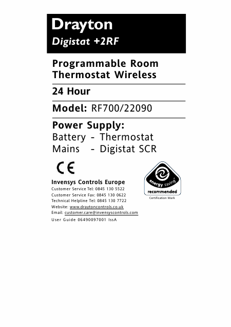 DIGISTAT +2 RF (RF700/22090) Anleitung Englisch