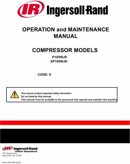 INGERSOLL-RAND XP185WJD Users Guide English
