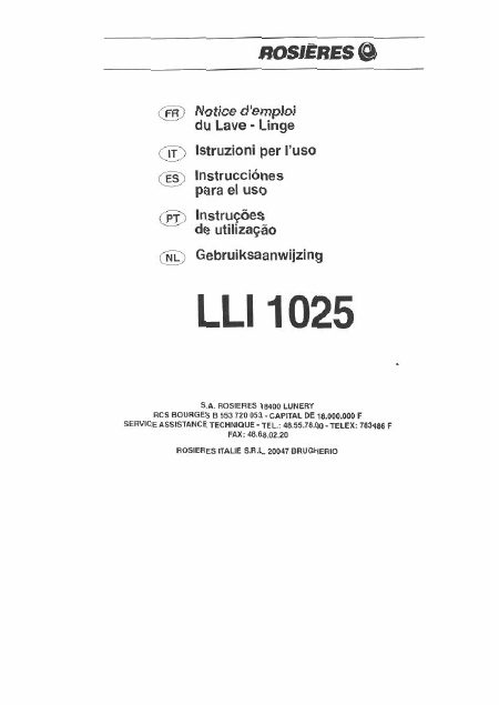 ROSIERES LLI 1025 Istruzione Francese