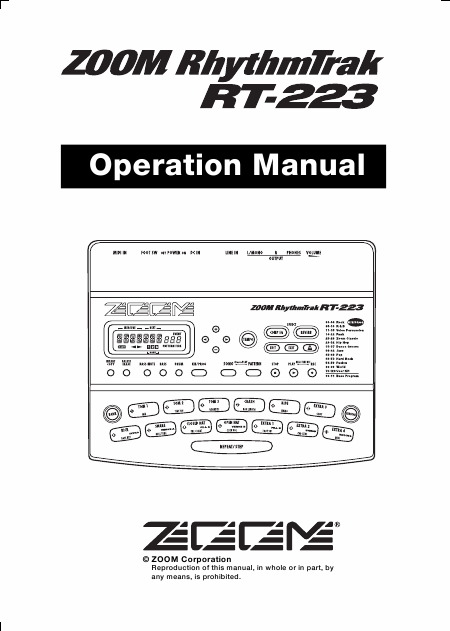 ZOOM RT-223 Rhythmtrack Users Guide English