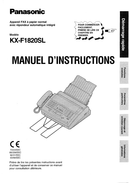 Telecharger PANASONIC KX-F1820SL Mode emploi Français (94 Pages) 15.90 EUR
