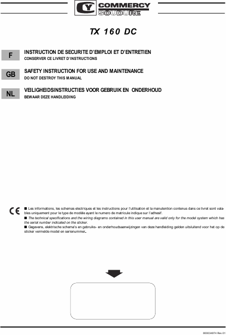 COMMERCY TX 160 DC Users Guide French