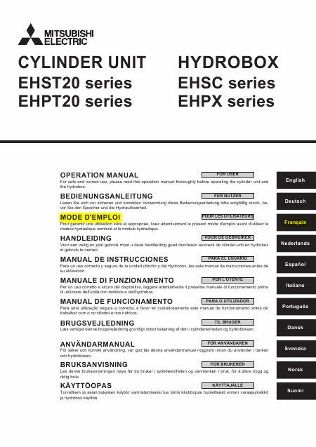Descargar MITSUBISHI ELECTRIC Hydrobox EHSC Series Guía del usuario Francés (14 Páginas) 15.90 EUR