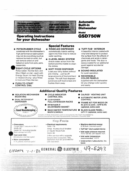 GE (GENERAL ELECTRIC) GSD 750 W (GSD750W) Instruções Inglês