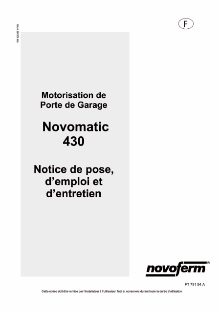 NOVOFERM Novomatic 430 Installationsanweisungen Französisch