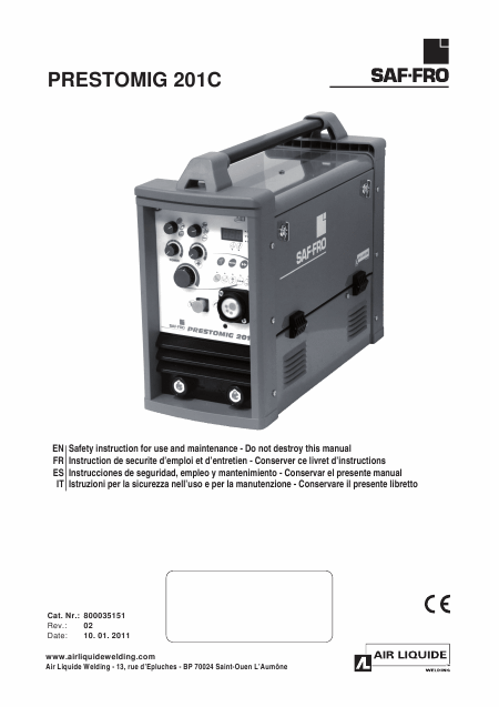 Baixar SAF-PRO PRESTOMIG 201C Instruções Francês (60 Pages) 15.90 EUR