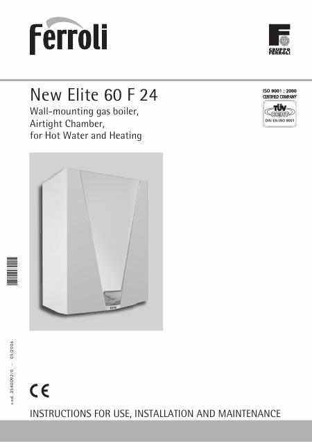 Telecharger FERROLI New Elite 60 F 24 (F24) Manuel installation Anglais (40 Pages) 15.90 EUR