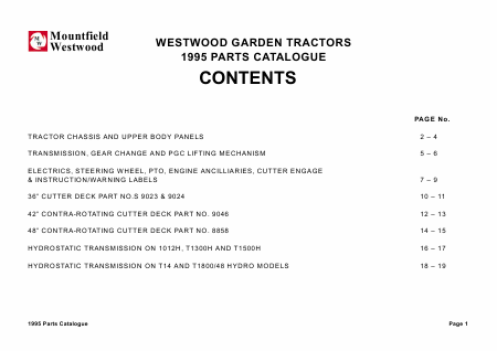 WESTWOOD Year 1995 Lista de peças Inglês