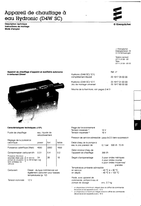 Telecharger EBERSPRACHER D4W SC Manuel installation Français (14 Pages) 15.90 EUR