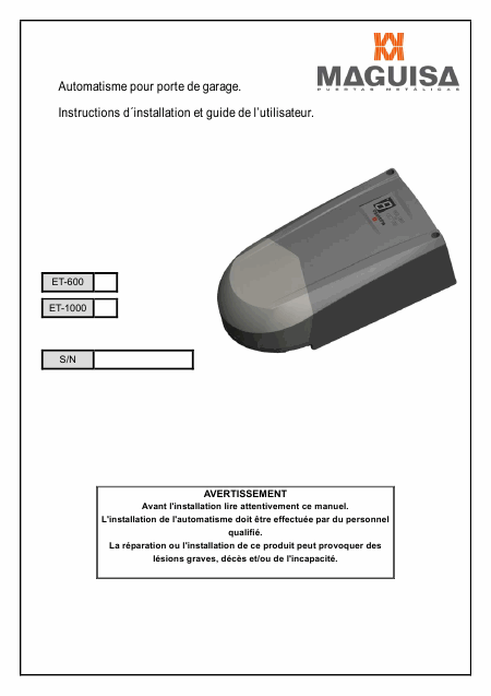 ETDOOR ET-1000 Anleitung Französisch