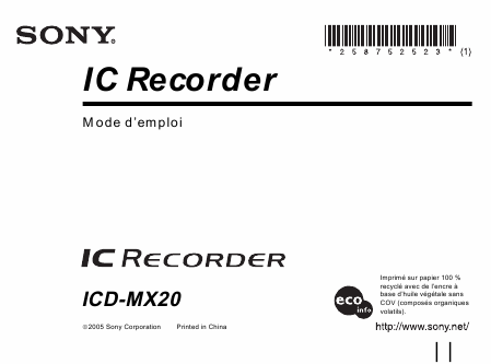 SONY ICD-MX20 Users Guide French