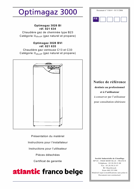 ATLANTIC FRANCO-BELGE Optimagaz 3028 BI r�f. 021 635 Istruzione Francese